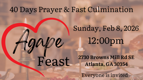 Join us on Sunday, Feb 8, 2026 @ 12:00 pm as we end our 40 Days Prayer and Fast Devotional.